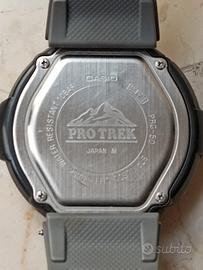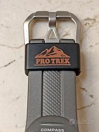 Orologio CASIO Pro Trek PRG-50 (conosciuto anche come modello 2471), modello sportivo digitale a carica solare ( Tough Solar) appartenente alla linea Pro Trek nota per le sue funzionalità avanzate per le escursionismo e l'outdoor. Fa parte della linea Triple Sensor offrendo strumenti come bussola, altimetro, barometro (per la rilevazione della pressione atmosferica) e il termometro. È caratterizzato da una cassa robusta con display digitale di facile lettura, resistenza alle basse temperature e impermeabilità fino a 100 m.