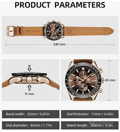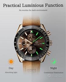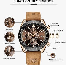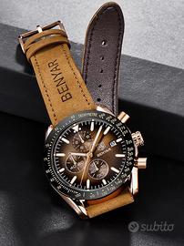 BENYAR Orologio da Uomo Cronografo Analogico Movimento al Quarzo Impermeabile Luminoso Moda Sportivo Affari Orologio da Polso Cinturino in Pelle/Acciaio Inox Elegante Regalo per Uomo