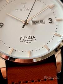 Sono un collezionista di orologi sia Moderni che Vintage. Vendo questo elegantissimo orologio del famoso Brand Svedese TRIWA Neve Klinga klst109-cl010212 con quadrante bianco, data e giorno della settimana al quarzo.