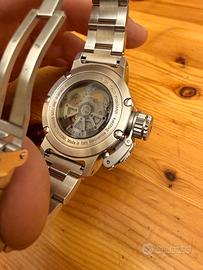 Vendo orologio U-Boat Chimera, movimento svizzero meccanico automatico ETA 2824 Top Soigné, elaborato e modificato su specifiche U-BOAT, Frequenza 28.800 alternanze/ora, (4 Hz), Riserva di carica 38 ore. 25 rubini Ponti avvitati, movimento a vista con vetro zaffiro, quadrante con vetro zaffiro, diametro 43 mm escluso corona, 3 cinghietti in dotazione tutti originali U-Boat, cuoio, acciaio mai adoperato costa 490€ , caucciù, scatola in cuoio e pochette rigida da trasporto, card garanzia della gioielleria dove acquistato nel 2017 e prove di impermeabilità, orologio perfetto NON presenta alcun graffio né eye line, revisionato a gennaio 2026 in U-Boat, richiesta leggermente trattabile solo in contatto telefonico 3474302242 Daniele, non fate le offerte voi non rispondo…