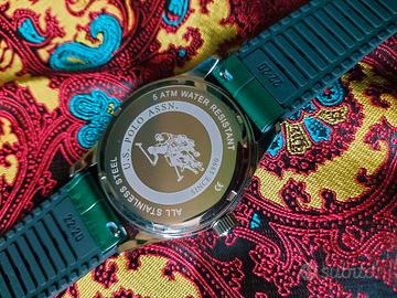 Vendo splendido orologio originale U.S. Polo Assn. (SINCE 1890), un classico intramontabile che unisce lo stile sportivo alla raffinatezza tipica del brand. Un accessorio perfetto per chi ama distinguersi con un dettaglio di colore ricercato. Caratteristiche principali: Quadrante: Elegante fondo verde scuro con logo iconico a ore 12 e funzione datario a ore 6. Cinturino: In pelle pregiata color verde bosco con raffinata stampa cocco, perfetto per un look sia casual che formale. Cassa: Acciaio lucido di alta qualità, resistente e brillante. Full Set: L'orologio è accompagnato dal suo cartellino originale, certificato di autenticità e la bellissima custodia rigida protettiva logata (bianca con profili blu). Condizioni: Assolutamente nuovo, mai indossato, con ancora la pellicola protettiva e il cartellino attaccato. Una perfetta idea regalo! 📍 Disponibile per consegna a mano o spedizione tracciata immediata. ✉️ Contattami se vuoi fare (o farti) un regalo di classe! Prezzo trattabile.
