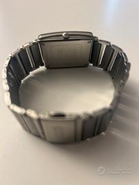 Rado DiaStar. Caratteristiche principali: Marca: Rado Modello: DiaStar Provenienza: Swiss Made (fabbricato in Svizzera) Caratteristiche del materiale: "Scratchproof" (antigraffio) e "Watersealed" (impermeabile). La linea DiaStar è nota per l'uso di materiali innovativi e altamente resistenti per garantire la resistenza ai graffi. Numero di riferimento/seriale: 03750657 (visibile nell'immagine fornita). Il Rado DiaStar originale è stato lanciato nel 1962 ed è stato acclamato come il "primo orologio antigraffio al mondo". Vale la regola visto piaciuto Consegna a mano zona Udine