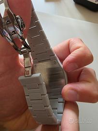Orologio al quarzo con forma esagonale colore grigio. Non è presente la marca in quanto orologio unbranded. Vendo anche con maglie di ricambio