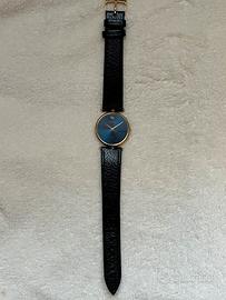 Vendo splendido Orologio da polso unisex Paul Picot, Genève, Svizzero, anni ‘80-‘90, ultra sottile, placcato oro, quadrante blu lucido, lancette color oro, cassa in acciaio inossidabile firmata e numerata, movimento al quarzo, diametro totale 31 mm, spessore solo 4 mm, cinturino in rettile (credo lucertola) per polso tra i 18 cm ed i 22 cm.