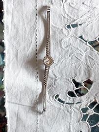 Splendido orologio gioiello d'epoca firmato Universal Genève, un vero capolavoro di alta orologeria e gioielleria degli anni '50/'60. Questo pezzo unico è realizzato interamente in oro bianco 18 carati (750) e impreziosito da una magnifica cornice di diamanti naturali sulla ghiera e lungo parte del bracciale.