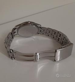 L'orologio ha la cassa rotonda con un diametro di 38mm realizzata in acciaio inossidabile di colore argento, così come il bracciale. Il cuore dell'orologio è un movimento al quarzo, mentre la classe di impermeabilità è di 3 ATM. Ha anche un datario alle tre.
