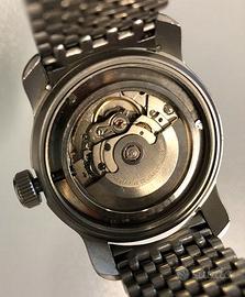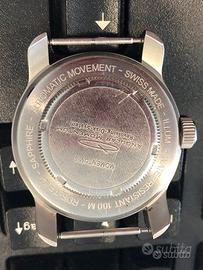 Lancetta dei secondi, lancetta dei minuti, combinazione di lancetta delle ore e ora (RDS), data alle 4, lancette e indici coperti con Super-LumiNova, movimento automatico ETA 2824-2, cassa in acciaio inossidabile 316L, corona in acciaio avvitata con intarsio con logo smaltato, vetro zaffiro singolo curvo da 3 mm, fondello avvitato, impermeabile 10 ATM (100 metri), cinturino in caucciù naturale, calibro della cassa 6 (42 mm).
