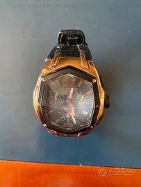 Orologio con quadrante esagonale e prisma, interamente in acciaio, cinturino in gomma. Cronografo