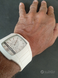 Orologio a batteria (nuova) "DIESEL" DZ-1321 originale, cassa large da 4,5 cm., cinturino silicone, colore bianco, usato raramente, vetro integro, funzionamento regolare, perfetto. Spedizione 7€