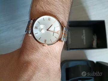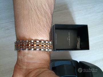 Vendo splendido orologio da uomo Emporio Armani, modello classico ed elegante. L'orologio è stato indossato pochissime volte ed è in ottime condizioni generali, come visibile dalle foto. L'orologio viene fornito completo della sua confezione originale (scatola rigida nera opaca e scatola interna a cofanetto), dei manuali di istruzioni e della garanzia originali. È inclusa anche una bustina sigillata che contiene le maglie aggiuntive. Ha bisogno della sostituzione della batteria.