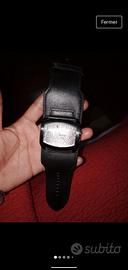 La cassa nera è rettangolare in acciaio con fondello che chiude a pressione.