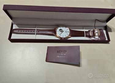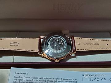 Orologio Uomo Henry London 5018479085966, codice identificativo HL42-AS-0276. Movimento automatico, cassa in acciaio, cinturino marrone in morbida pelle, quadrante bianco con indici rosè, vetro bombato con ancora pellicola originale.