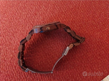 Orologio Uomo Con Calendario completo, movimento a Quarzo collezione Green Time totalmete in legno sandalo nero e zebrato con lancette a bastone rosate e bianche, super leggero. Il quadrante di colore marrone/ beige misura 43 mm. La ghiera fissa è rotonda mentre la cassa è rettangolare. L'orologio è realizzato con vetro minerale antigraffio. La chiusura è a scomparsa con pulsanti laterali di sicurezza. L'orologio verrà consegnato nella sua scatola originale con libretto garanzia ufficiale 24 mesi Green Time (ormai scaduta), codice