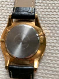 Elegante orologio da polso Laurens con cinturino in pelle nera e cassa color oro.