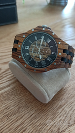 Orologio al quarzo, pregiato in legno zebrano 100% naturale, assemblato a mano e studiato rispettare il nostro pianeta.