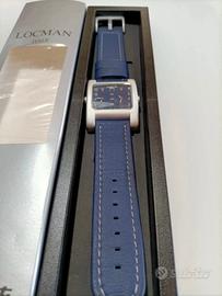 Orologio Locman con cinturino blu. - Cassa in metallo. - Cinturino in pelle blu con cuciture bianche. - Quadrante blu
