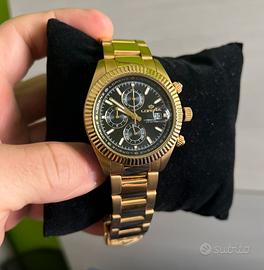 Orologio Lorenz 030094JJ maschile modello Ginevra chrono-forma tonda,vetro minerale, display analogico, cassa in acciaio , cinturino in acciaio trattamento ip oro, meccanismo quarzo,cronografo,impermeabilità 10 atm.