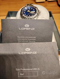 Orologio uomo Lorenz 17839 subacqueo Lorenz Sub Professional, cinturino acciaio quadrante blu funzionante con certificazione e scatola originale