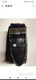 Orologio al quarzo in acciaio con cinturino in vera pelle usato in discrete condizioni. Il vetro sfaccettato presenta due piccole crepe non percettibili al tatto mentre il cinturino è stato un parte ricostruito causa rottura precedente. l'orologio è ben funzionante con pila nuova inserita.