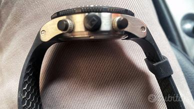 Vendo Orologio da polso con cronografo maschile Quondam 6323CHR bracciale in gomma, batteria nuova - piccolo difetto nel quadrante vedi foto allegate, usato poco. Ritiro a Milano