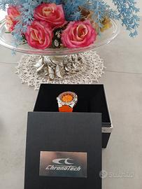 Orologio arancio / nero Chronotec con custodia , sacchetto ed etichetta. nuovo , mai usato 30€
