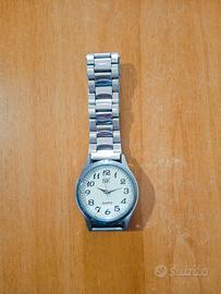 Elegante orologio da polso vintage con cinturino in metallo e quadrante bianco.