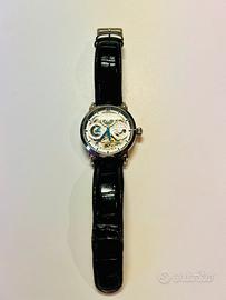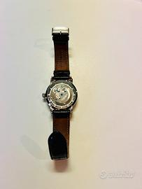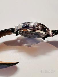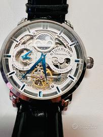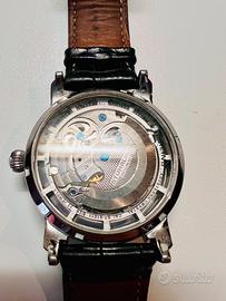 Orologio uomo sthurling funzionante a carica manuale cinturino in pelle ghiera in acciaio lucido quadrante con ingranaggi a vista, usato, da uomo.
