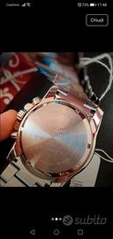 Nuovo, con cartellino, ma datato. Quadrante blu, cronografo W.R. 10 bar