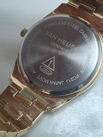 Orologio uomo Van Heusen originale, elegante e moderno. Quadrante verde effetto satinato con dettaglio “diamond”, cinturino color oro in acciaio inox. Movimento al quarzo giapponese, preciso e affidabile. Usato una volta, in ottime condizioni come da foto. non posseggo la scatola.