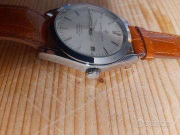 Elegante orologio Vacheron Constantin Geneve con cinturino in pelle marrone.