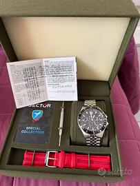 Sector edizione limitata Folgore numero 602 di 2000 nuovo con garanzia 3 anni con secondo cinturino in dotazione al cofanetto pezzo veramente originale nel suo stile prezzo non trattabile preferisco consegnare a mano no perditempo non e un orologio per tutti ma orologio da collezione