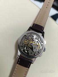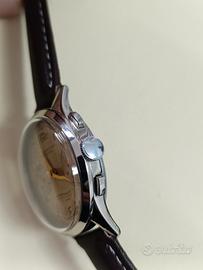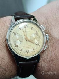 Vendo Cronografo Verbena anni 50, cassa cromata in ottimo stato da 37mm esclusa corona, movimento Landeron funzionante sia tempo che Chrono, bellissimo quadrante originale . non conosco la data dell'ultima revisione. orologio originale