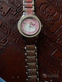 orologio hello kitty per bambina pink glitterato anno 2010 stainless steel back hello kitty scurio