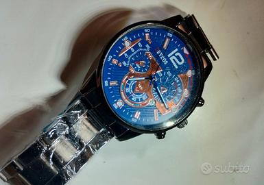 Questo è un orologio da polso da uomo Deyros 1531 con quadrante blu e cinturino in metallo.