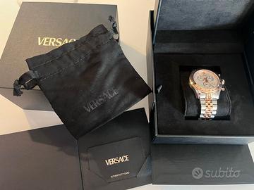 Vendo orologio Versace da uomo in perfette condizioni (nuovo mai usato). Perfetto per chi cerca un accessorio di classe, sportivo ma allo stesso tempo elegante. Movimento: Al quarzo svizzero Funzioni: Cronografo, data, ore-minuti-secondi Cassa: Acciaio inox Vetro: Zaffiro resistente ai graffi Cinturino: bicolore (SS&IP5N) con fibbia a farfalla Resistenza all'acqua (5atm) Condizioni: Ottime, nessun graffio visibile, perfettamente funzionante Completo di: scatola originale e tessera versace certificante l'originalità . DISPONIBILE PER RITIRO A MANO SU MILANO. 📩 per maggiori informazioni
