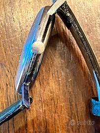 Vendo orologio Vetta anni '50 usato in buone condizioni, cassa cromata, movimento Vetta 210 (Eta 1120) incabloc a carica manuale ottimamente funzionante (video disponibile). Revisionato, smontato, pulito e lubrificati (l'ultima foto da smontato durante le operazioni di pulizia), perfettamente funzionante. Vetro plastica, corona nuova, cinturino come nuovo verde scuro. Bel quadrante con patina bellissima, secondina ore sei. Diametro cassa circa 34 mm esclusa corona, qualche segno di corrosione sulla cassa dovuto all'uso, tutto ben visibile nelle foto. Orologio preciso e ben funzionante, antichock, formula visto e piaciuto, no resi.
