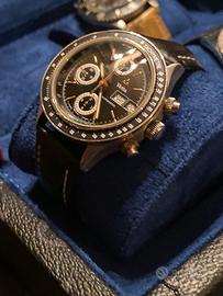 Cedo dalla mia collezione privata questo fantastico cronografo Vetta anni 90. Referenza 1107.50 monta il prestigioso movimento automatico Lemania 5100. Cassa da 39mm esclusa corona, vetro zaffiro. condizioni estetiche e meccaniche perfette. Solo orologio e dichiarazione dí lecita provenienza