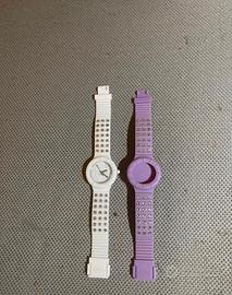 Orologio Hip Hop con due cinturini brillantinati, uni bianco e uno viola, in ottime condizioni. Utilizzato pochissime volte