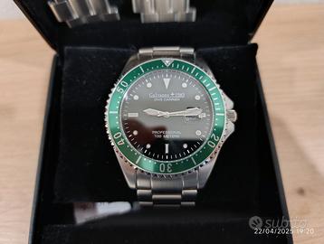 Calvaneo astonia diver 100mt sub quarzo ghiera girevole 46mm perfettamente funzionante con scatola e maglie