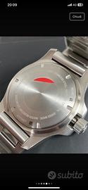 Referenza 241782 Diametro 45mm Altezza 14mm Larghezza ansa 22mm Chiusura doppia di sicurezza Lunetta girevole unidirezionale Datario Movimento al quarzo Resistente all'acqua 20ATM Finitura lucido spazzolato Completamente in acciaio inossidabile Quadrante blu -orologio subacqueo certificato ISO 6425 con movimento al quarzo swiss made, anti magnetismo, cinturino anti corrosione con estensione per adattarsi in modo sicuro alla muta - include un paraurti protettivo traslucido con una lente d'ingrandimento rimovibile - completo di scatola, controscatola e documenti