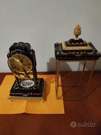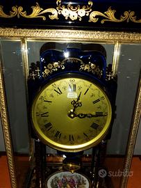 Questo è un magnifico orologio vintage Alfa Ceramiche degli anni '60, realizzato in Italia. L'orologio presenta un corpo in porcellana blu cobalto con dettagli dorati, eleganti decorazioni floreali e una cassa in vetro che ne esalta l'aspetto lussuoso. Il quadrante con numeri romani è splendidamente rifinito in oro, e il meccanismo a batteria rende questo pezzo sia funzionale che da collezione.