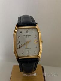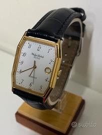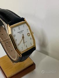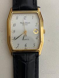 Philip Watch Echo. Si tratta di un orologio al quarzo "Swiss Made" con una caratteristica cassa ottagonale (tonneau) placcata in oro e un quadrante bianco con numeri arabi e datario a ore 3. Dettagli del Modello Marca: Philip Watch Collezione: Echo Movimento: Al quarzo (Quartz) Caratteristiche: Cassa laminata o placcata oro, datario a ore 3, vetro minerale. Stile: Vintage, tipico degli anni '80 o '90