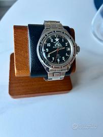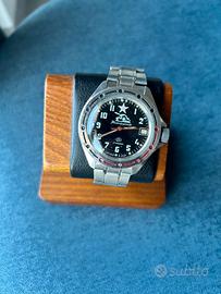 In vendita orologio bostok/ vostok Komandirskie. Orologio iconico per appassionati. Orologio funzionante bracciale in acciaio indici al trizio. Dial nero con l'iconografia tank L'orologio si presenta in buone condizioni come da foto ***Le foto sono parte integrante della descrizione*** ***Non si accettano resi*** ***Non accetto scambi con Omega, Longines, Zenith, Eberhard, Breiting, Tissot, Hamiltion, Tag Heuer, Squale, Seiko etc***