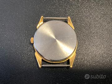 Vendo orologio vintage Classic Antimagnetic Japan Movt da uomo con cassa dorata da 30 mm e cinturino di tela nera a maglie intrecciate (22 cm), visibilmente usato.