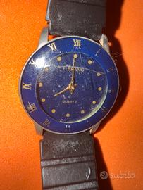 Orologio da polso con quadrante blu e numeri romani, design classico ed elegante. Cinturino nero e cassa sottile, comodo da indossare. ⚠️ Da revisionare L’orologio è fermo, ideale per collezione o ricambi. Con una revisione può tornare in funzione. Movimento al quarzo. Condizioni estetiche discrete con segni evidenti sul vetro (vedi foto).