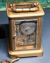 Orologio da viaggio o da tavolo, perfetto in tutte le sue parti. Nella foto si vedono delle striature bianche ma è la pasta per lucidare l'ottone...( pulita male ...) L'orologio è firmato dall'autore Aiguilles ed è della fine 800 o primi 900.