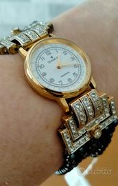 Orologio Vintage GIANVIX in argento 800 e dorato, con perline in ematite e strass - FUNZIONANTE (sostituito pila oggi) lunghezza aperto cm 22 circa (Acquistato nel 2002 con l'entrata dell'euro, per collezione personale)