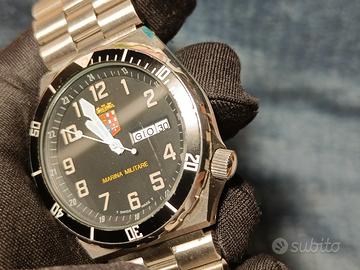 Un pezzo di storia al polso. Questo DPW Marina Militare unisce estetica operativa, fascino vintage e affidabilità quotidiana. Il quadrante nero ad alta leggibilità, la ghiera sportiva e l’emblema della Marina Militare lo rendono immediatamente riconoscibile: è un orologio nato per l’azione, ma perfetto anche per chi ama uno stile deciso e senza compromessi.