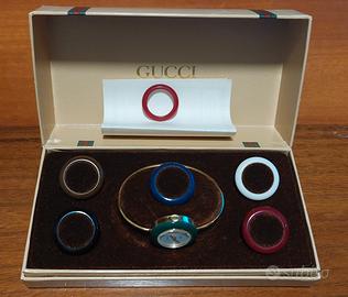vendo orologio Gucci ref. LW/011 con 6+1 ghiere intercambiabili, pari al nuovo, con scatola e certificato originale acquistato da Gucci in via dei Condotti a roma nel lontano 1982. unico proprietario.