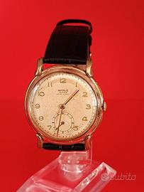 Porto alla vostra attenzione, questo Orologio vintage dell'azienda Francese Harlo, modello Harlo Super "Stile Decò"misura "oversize" per l'epoca, con movimento manuale,originale,Buser calibro 180, perfettamente funzionante, e in buone condizioni. La cassa dell'orologio e placcata in oro (20microns), la stessa si presenta in buone condizioni priva di parti scolorite, la sua misura e di 38mm, corona di carica compresa, mentre senza misurare la corona misura 36mm, le sue particolari anse in stile decò e la sua misura,rendono questo orologio elegante e particolare,la sua corona di carica e l'originale dell'epoca, monta un vetro Plexi il quale e privo di graffi profondi e segni visibili,il suo cinturino in pelle, nuovo, e da 20mm con chiusura ad ardiglione,che dire del suo quadrante il quale si presenta con dei piccoli puntini che nulla tolgono alla bellezza dell'orologio,nel mondo dei collezionisti questo tipo di quadrante e molto ricercato e viene chiamato"Tropical",la numerazione e in numeri arabi mentre a ore sei vi e il piccolo quadrante dei secondi, infine monta un fondello in acciaio inox con chiusura a vite,nel quale vi sono riportati i numeri di referenza dell'orologio e altro. Anche questo orologio appartiene alla mia piccola collezione privata, non essendo un venditore di professione, la vendita e tra privati e si avvale della formula del visto e piaciuto,io garantisco personalmente che all'acquirente le verrà consegnato l'ho stesso orologio pubblicato funzionante e nelle stesse condizioni generali visibili nelle foto pubblicate. Per dei seri problemi di salute a causa di una recidiva,mi vedo "costretto" a sfoltire la mia piccola collezione privata,i prezzi che verranno pubblicati sono dei prezzi molto bassi per come sono stati controllati,e nel caso riparati, anche i vetri quando non sono in buone condizioni li ho sempre sostituiti, mentre i cinturini sono sempre stati sostituiti con dei cinturini in pelle,nuovi , e di marca.